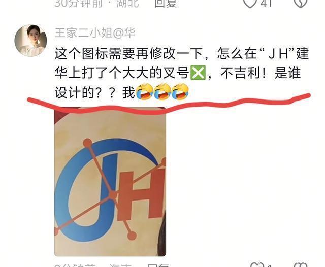 尽管有正面声音,但更多网友还是觉得这个LOGO设计得太丑,甚至有网友主动为他们公司重新设计了LOGO。 新LOGO用黄色和大红色组成,将“许建华”三个字的首字母连接在一起,这条设计建议还获得了五十多个赞。
